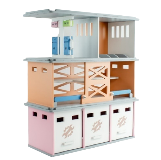 Три яруса (этажа), размер каждого 51х23х23: Гараж, заправка, стоянка. Ворота и шлагбаумы поднимаются.