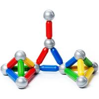 Состоит из 25 магнитных разноцветных деталей: 4 длинных и 12 коротких палочек с гранями, 9 шариков и инструкции. Магнитные детали легко скрепляются между собой, образуя самые различные конструкции, на которые только способна фантазия ребенка.