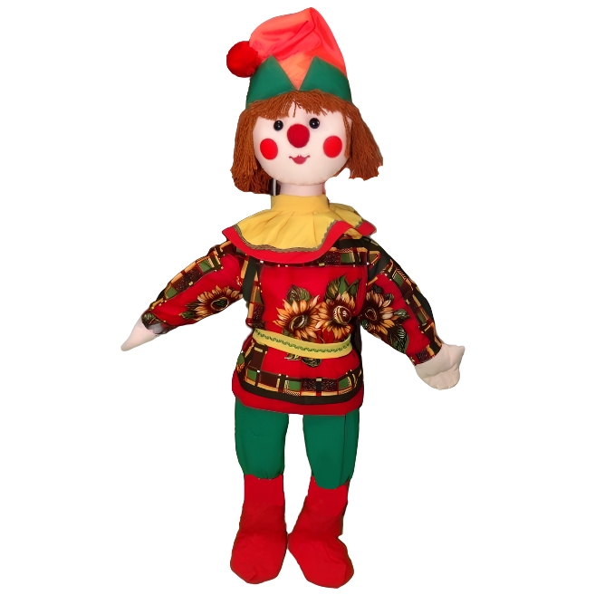 Мягконабивная кукла «Петрушка» практически соразмерна росту ребенка.
