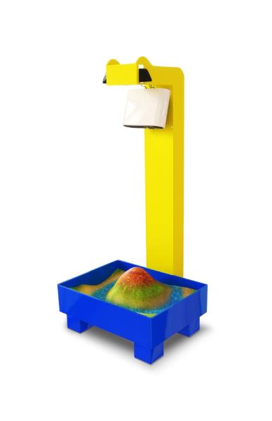 Датчик расстояния, расположенный в верхней части песочницы, считывает каждое движение играющих малышей, встроенное ПО обрабатывает полученные данные, а проектор «оживляет» построенные конструкции. Таким образом, обычный песок превращается в земную поверхность с озерами и горами, вулканами и долинами. Дошколята смогут на практике увидеть, как устроен земной ландшафт, познакомиться с основными географическими понятиями и даже построить свой собственный мир.