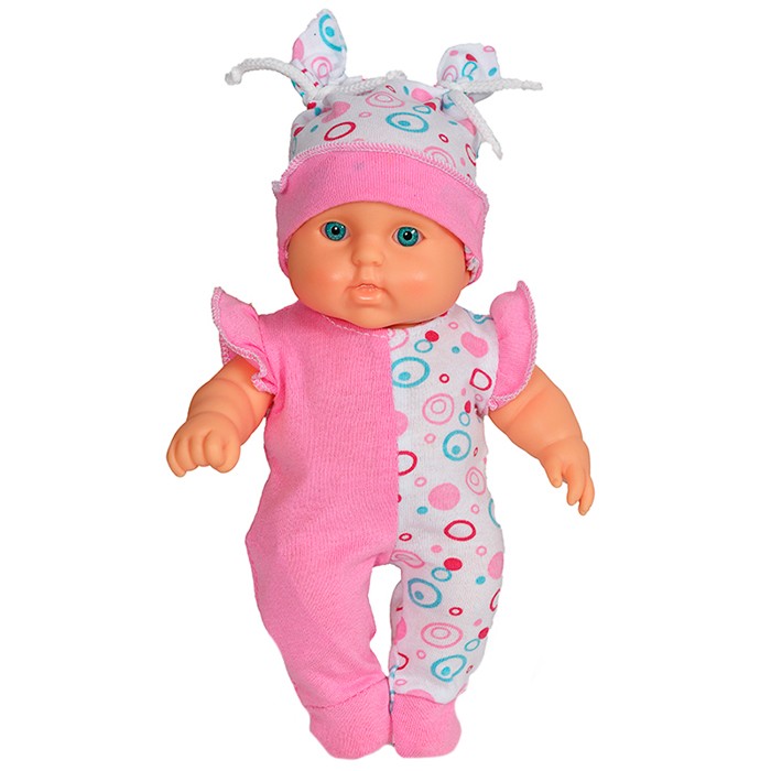 Конструкция куклы позволяет ее сажать, переодевать и укладывать спать, у куклы вставные не закрывающиеся глазки, рельефный кукольный паричок и нет звукового устройства.