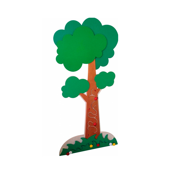 Тактильная настенная панель представляет собой высокое дерево, по извилистым дорожкам на стволе которого малыши будут передвигать жучков и цветы.