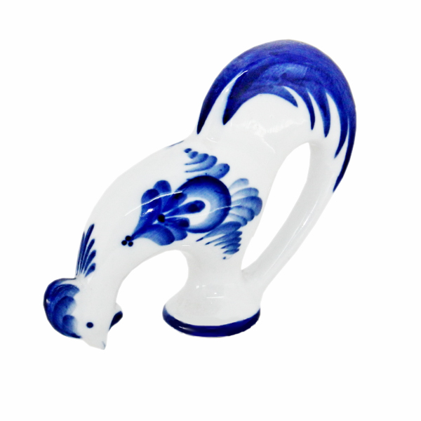 Сувенир авторской работы в виде фигурки петуха, расписанного в технике гжели. Белый петушок, с синими перышками подойдет в качестве приятного сувенира или для украшения интерьера.