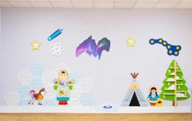 Для оформления развивающих панелей мы используем тактильные элементы, чтобы детям было интересно трогать, изучать то, что они видят.