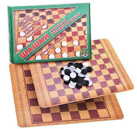 В комплект игры входит двустороннее складное поле из жёсткого картона 42 х 32 см., шашки пластмассовые двух цветов диаметром основания 2,7 см. - 30 шт., кубики игральные 1.5 см. - 2 шт., правила игры в нарды.